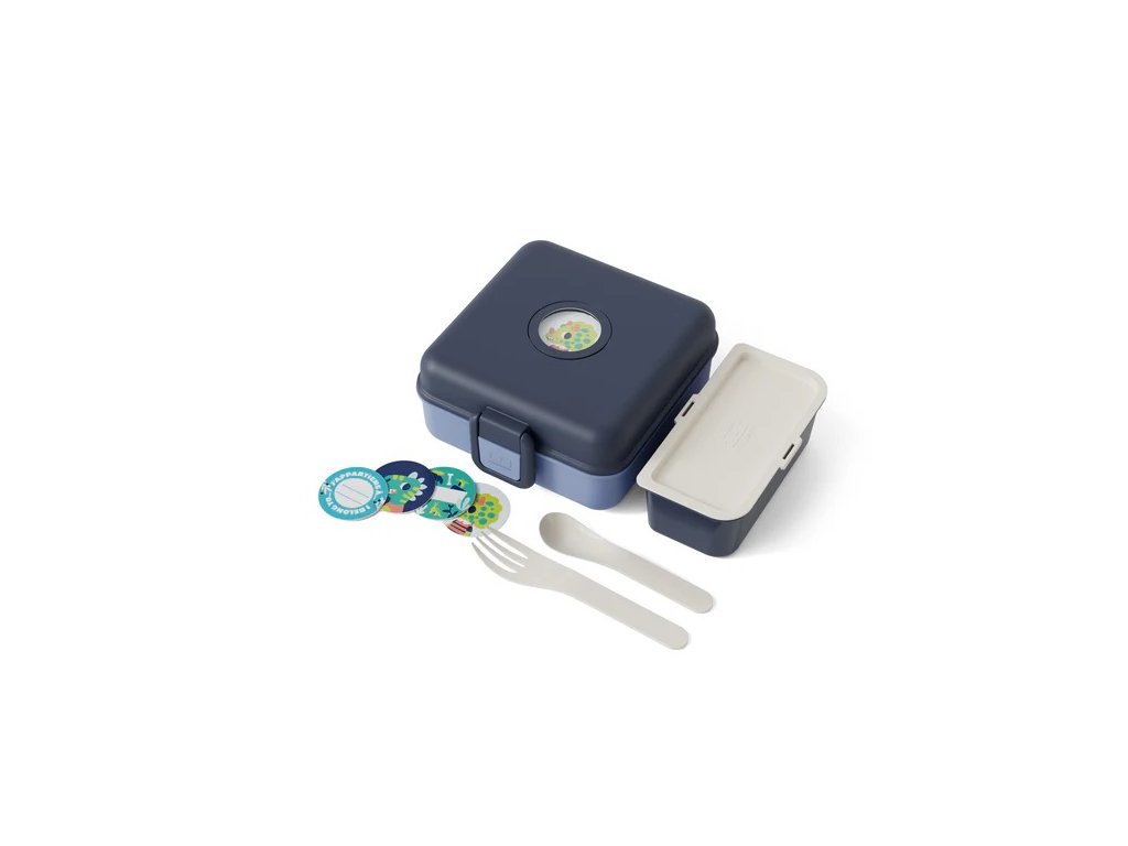 Dětský dárkový set na svačinu, box a sada příborů MonBento Kids Snack|tmavé-modrý