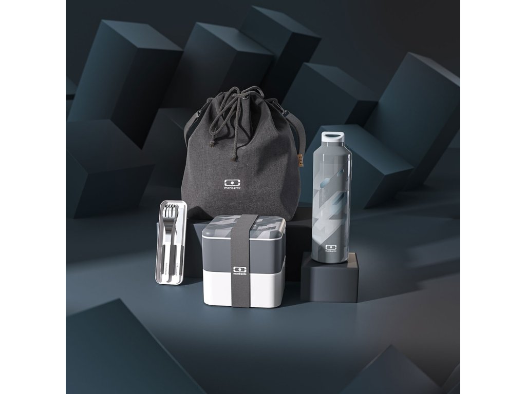 Moderní design se soft-touch úpravou. Do víčka lze umístit příbor od MonBento.