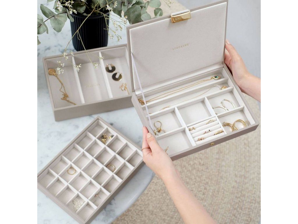 Nejprodávanější rozměr Classic šperkovnic Stackers s klasickou velikostí je ideální pro většinu sbírek šperků. Poskytuje jedinečný prostor pro všechny typy šperků, od náhrdelníků po prsteny, po kouzla a hodinky.