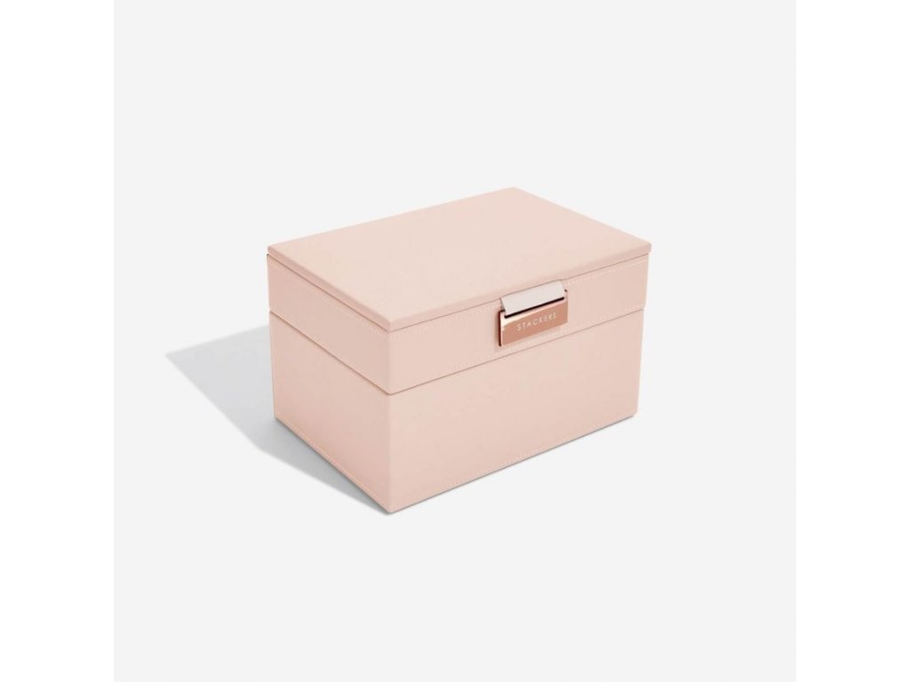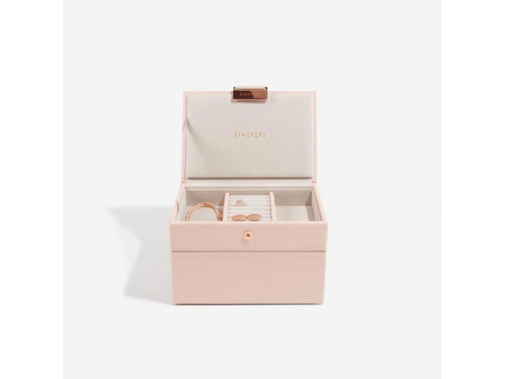 Šperkovnice Stackers Blush Mini je vyrobena z měkké veganské kůže s kvalitní bavlněnou podšívkou. Tato šperkovnice je ideální pro uložení většího množství šperků, od náhrdelníků a náramků až po prsteny a náušnice.