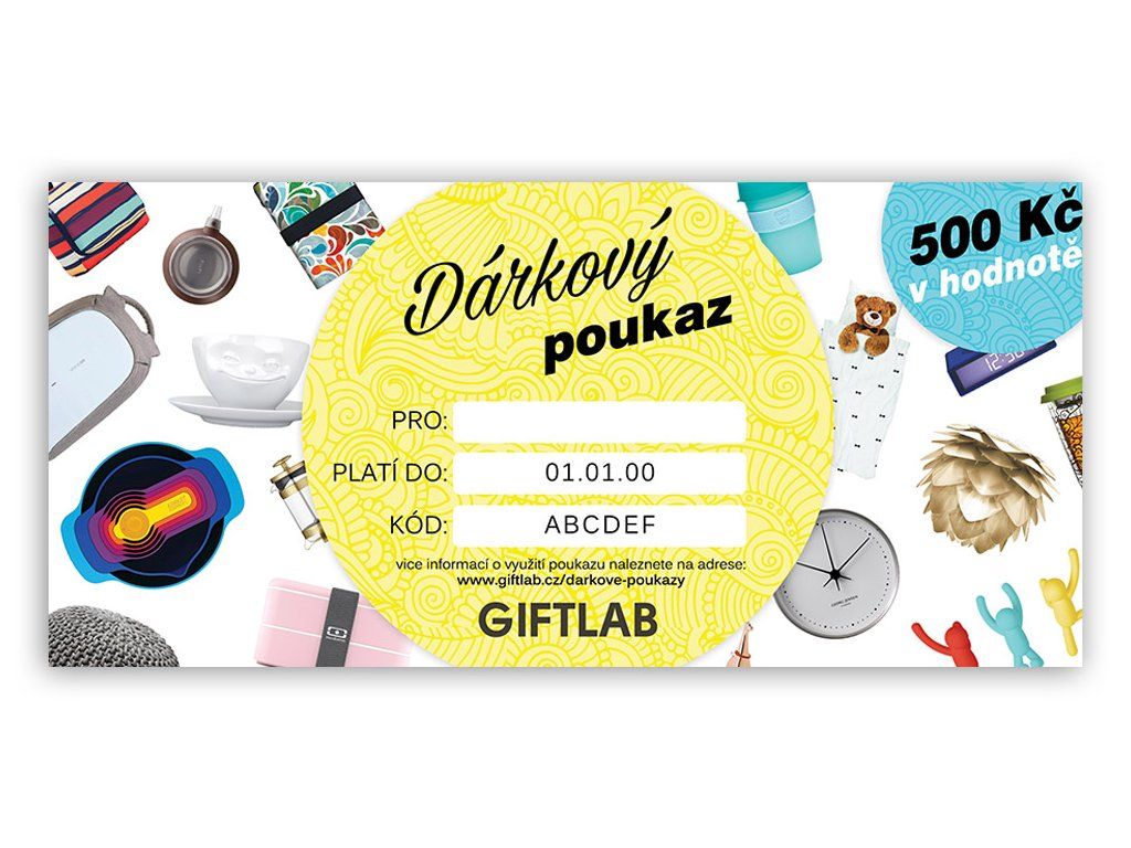 Elektronický dárkový poukaz / voucher na nákup designových vychytavek v e-shopu GIFTLAB.cz.