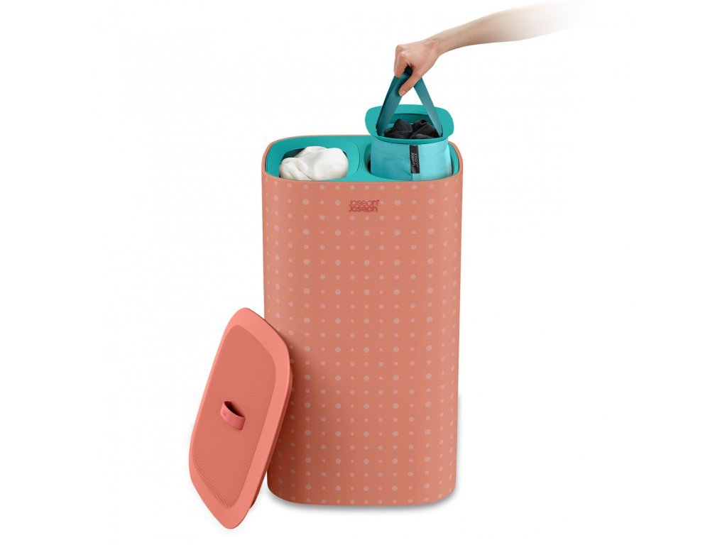 Koš na prádlo JOSEPH JOSEPH Tota 60 umožňuje předběžné třídění prádla do dvou snadno vyjmutelných pytlů (každý o objemu 30l)