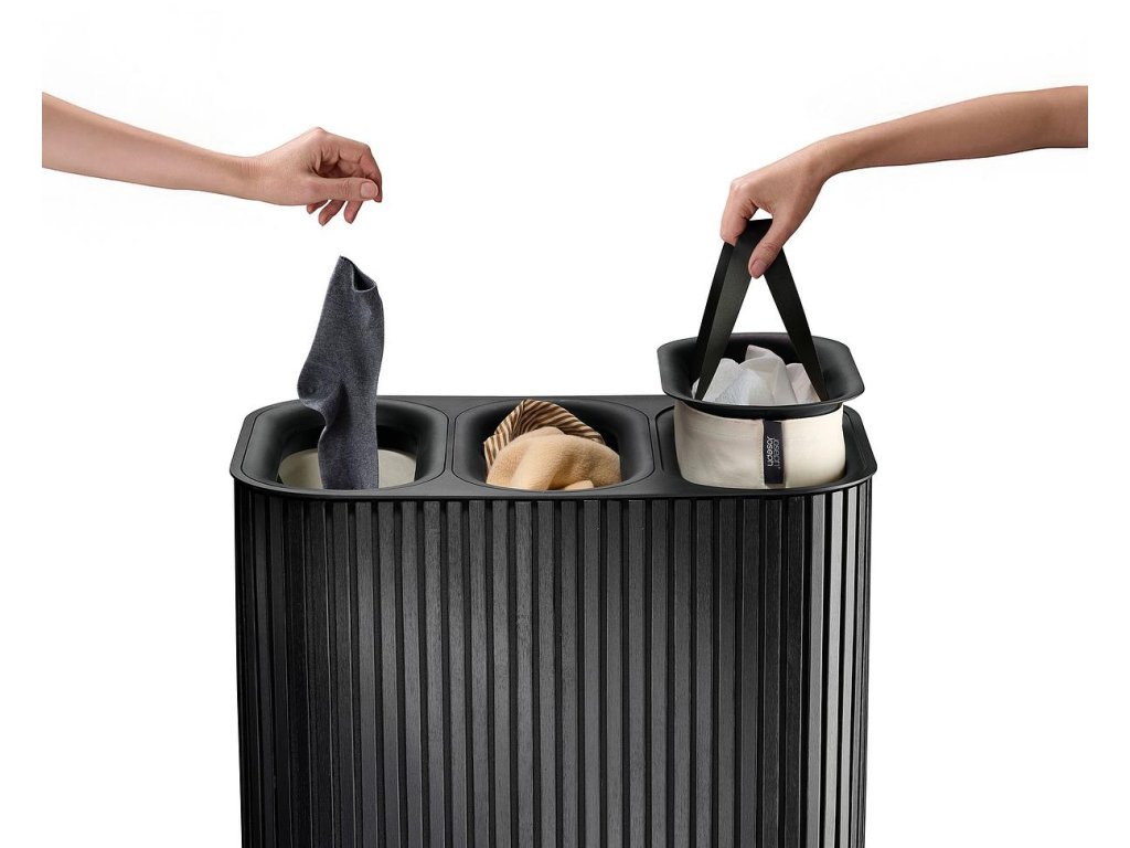 Luxusní varianta koše Tota Trio s bambusovým exteriérem JOSEPH JOSEPH | černá