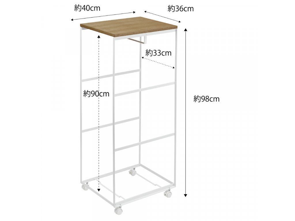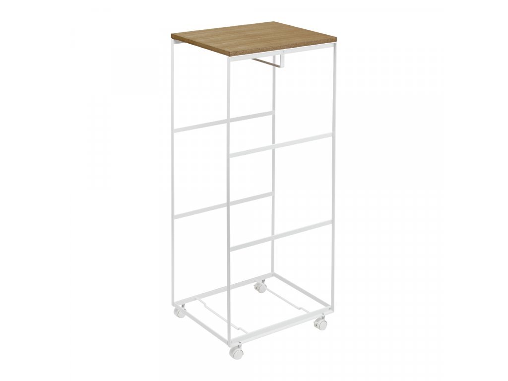 Vozík na prádelní koš YAMAZAKI 4936. Materiál: lakovaný kov, dřevo. Velikost: 98 x 38 x 40 cm (VxŠxH).