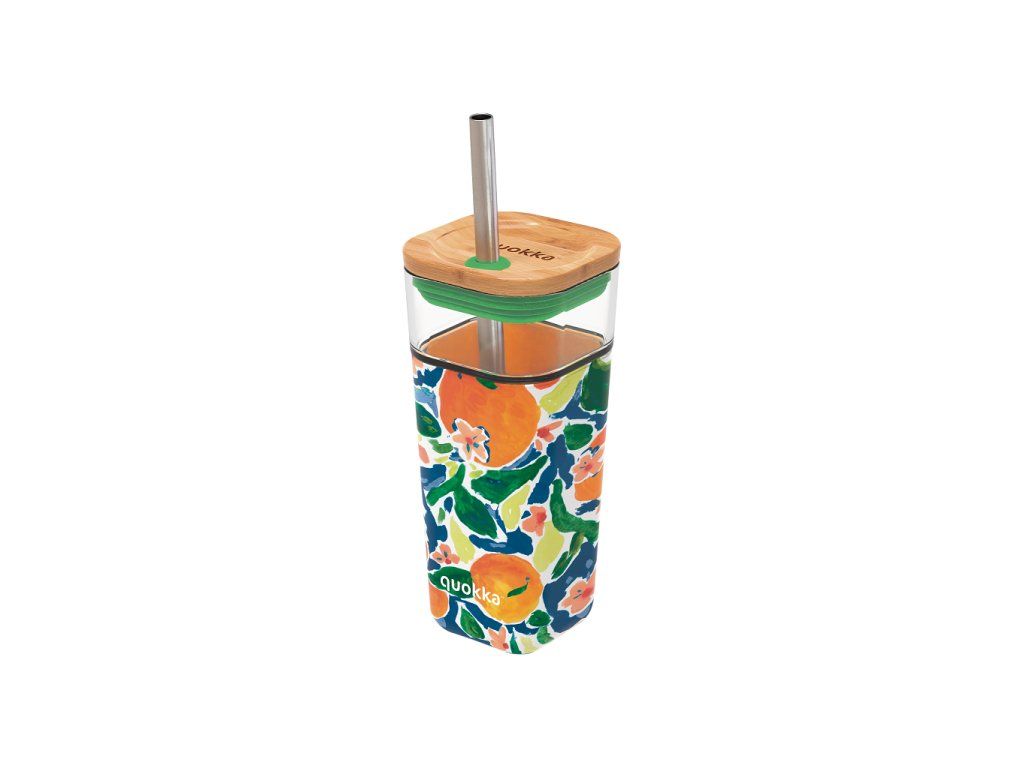 Skleněný pohár s brčkem Liquid Cube Quokka Cube orangres, 540 ml