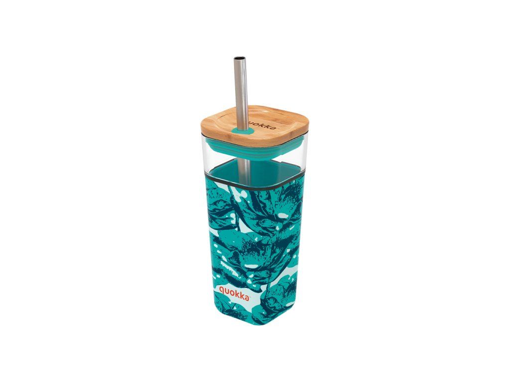 Skleněný pohár s brčkem Liquid Cube Quokka Flowers, 540 ml