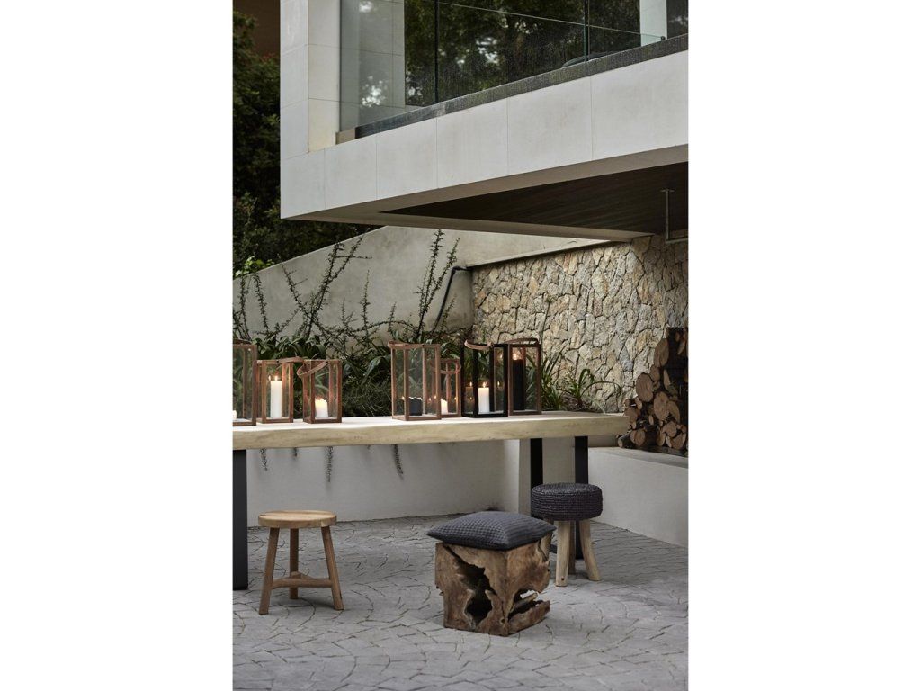 Lucerna z černého teaku od Muubs. Černá lucerna má surový, nenápadný výraz s černým dřevem, díky kterému se na povrchu objevují jedinečné kresby dřeva a vytvářejí syrový kontrast k rukojeti z přírodní kůže. Použijte lucernu samostatně v interiéru, na terase nebo ji kombinujte s různými Muubs lucernami v různých velikostech a materiálech.