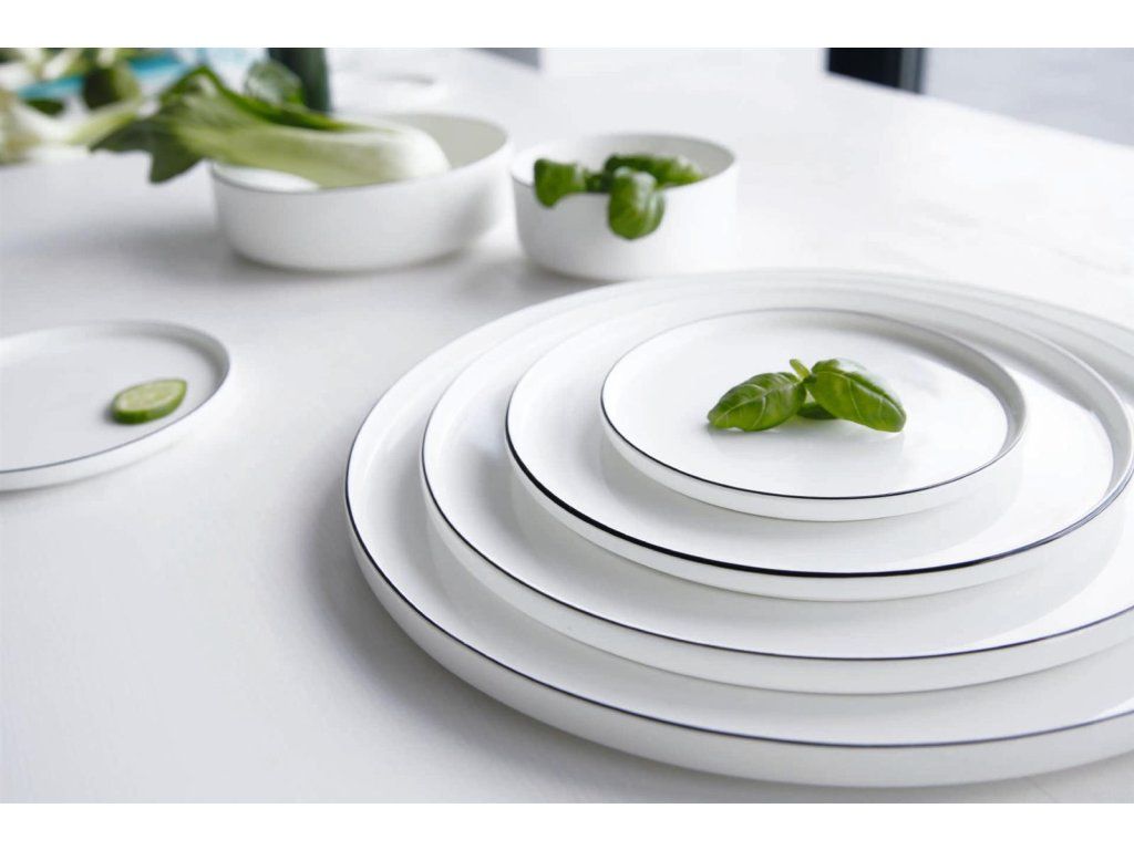 Kolekce A Table Ligne Noire doplňuje stávající kolekce A Table. Ukazuje nadčasový design díky své jemné černé linie na ráfku, který je kladen řučně. Jemná černá linie dává elegantní nádech lesklý vzhled jemného kostního porcelánu.