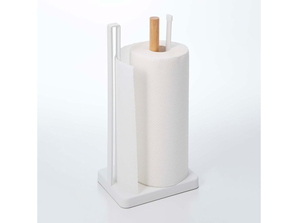Nápaditý kovový stojan na role papírových utěrek.