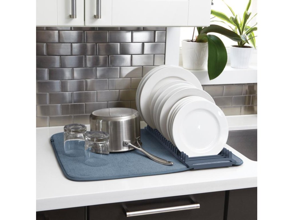 Lehká podložka z mikrovlákna, vyrobená z odolného polypropylenu, absorbuje vodu ze sušení nádobí a zároveň chrání pracovní desku před poškrábáním a usazováním vody.