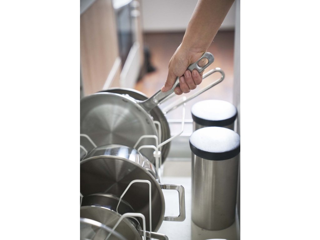 YAMAZAKI Tower Expandable Pot Lid & Pan Holder - nastavitelný stojánek na pokličky a pánve.