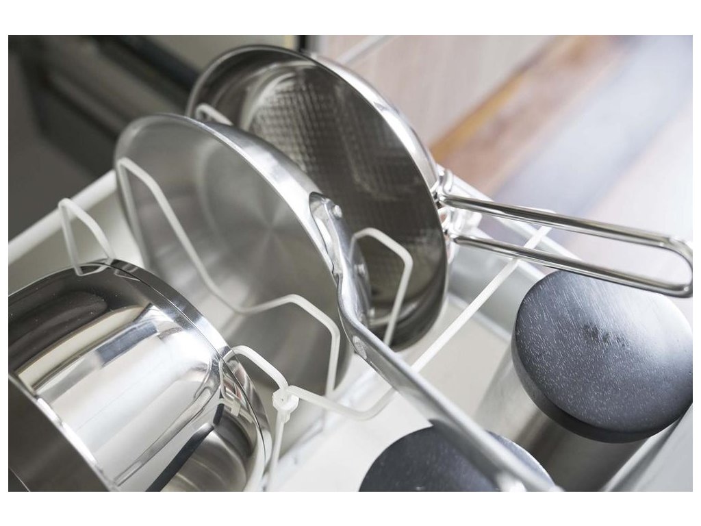 Stojánek na pokličky a pánve nastavitelný YAMAZAKI Tower 3840, bílý