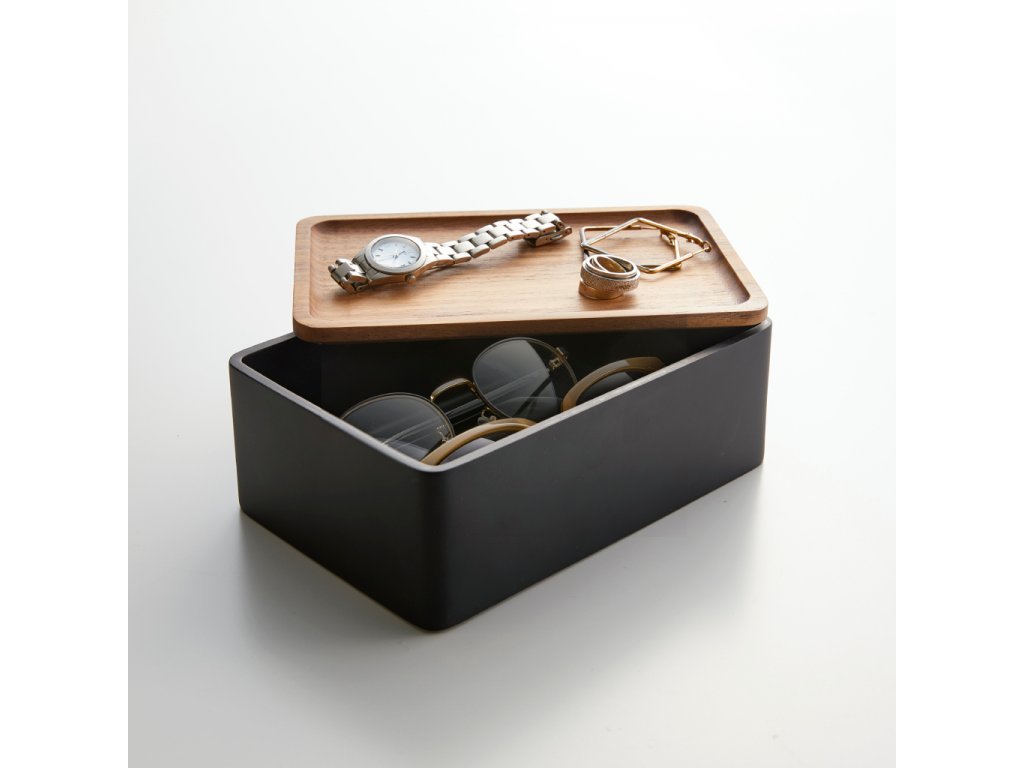 Praktický a elegantní úložný box s dřevěným víčkem – YAMAZAKI Rin 5166