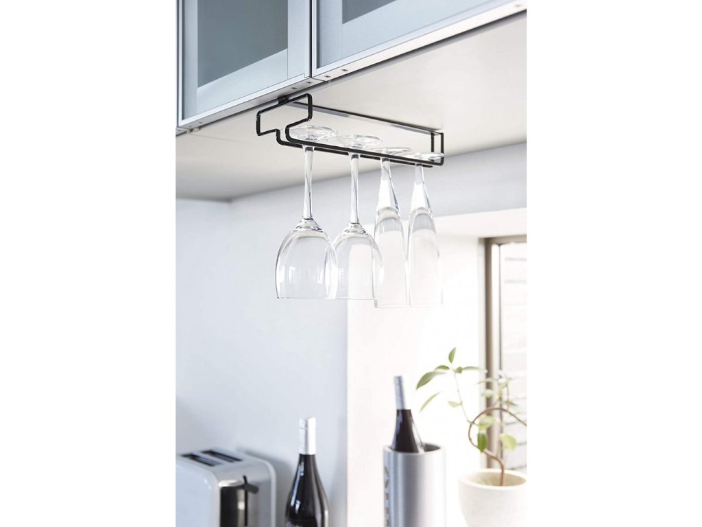 Držák sklenic k umístění pod polici - YAMAZAKI 2463 . Vyrobeno z lakovaného kovu. Pro police tloušťky 1,4 - 2 cm.