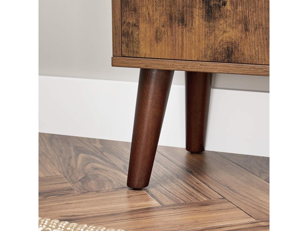 Zkosené nohy této police jsou vyrobeny z heveového dřeva, vyztuženy šrouby a dřevěnými kolíky, zajišťují vynikající stabilitu. Panely jsou vyrobeny z kompozitního dřeva.