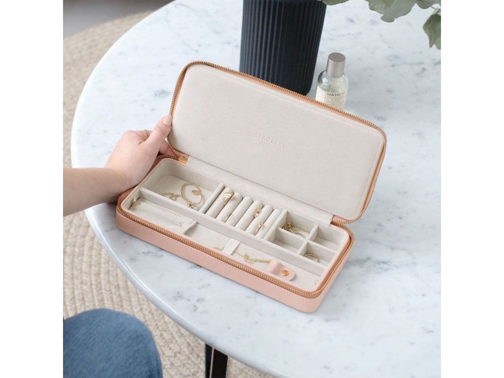 TIP: Cestovní šperkovnice je k dispozici v růžové a šedobéžové barvě.