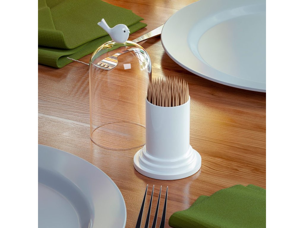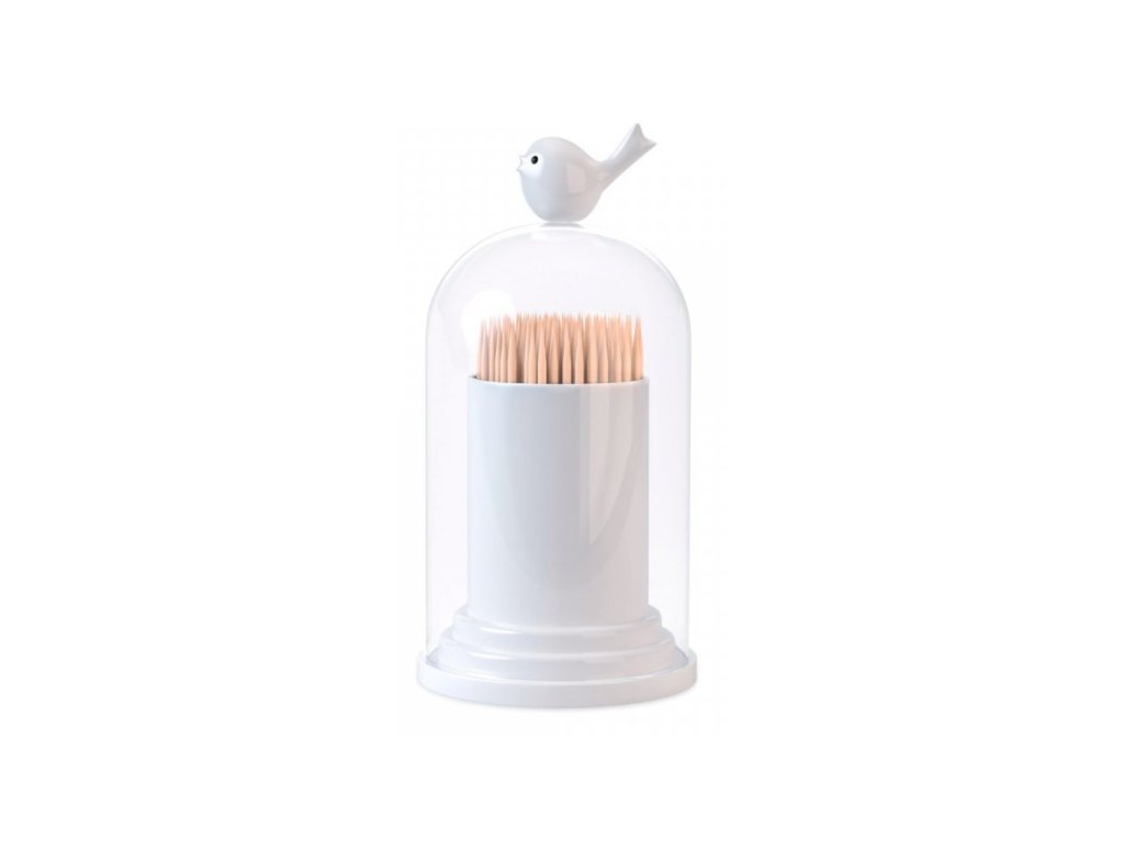 Plastový stojánek BALVI Birdie na párátka nebo vatové tyčinky. Velikost: 12,3 x 6,3 x 6,3 cm.