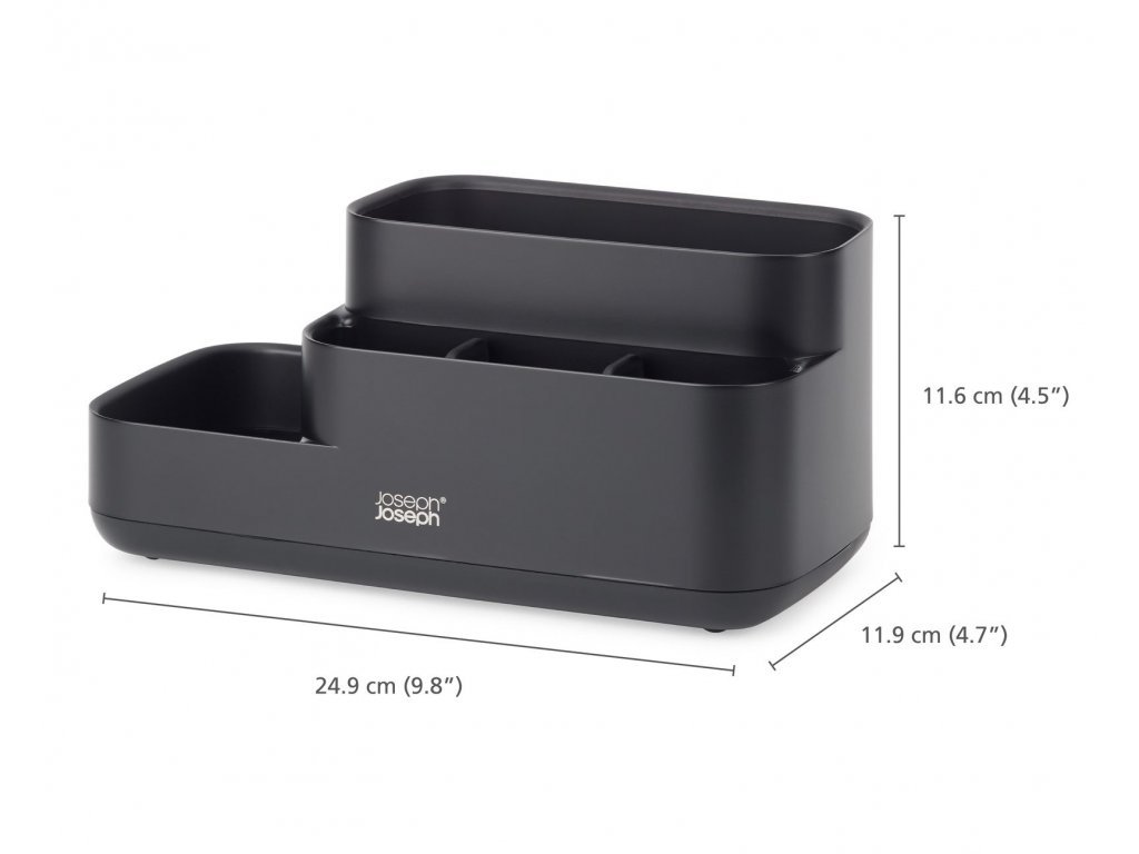 Koupelnový stojánek JOSEPH JOSEPH EasyStore Caddy 70600 je rozdělený na několik sekcí různé velikosti a hloubky. Poskytuje prostor pro nůžky, hřebeny, kartáče, holicí strojky, deodoranty, make up atd. Velikost: 11,6 x 24,9 x 11,9 cm (VxŠxH).
