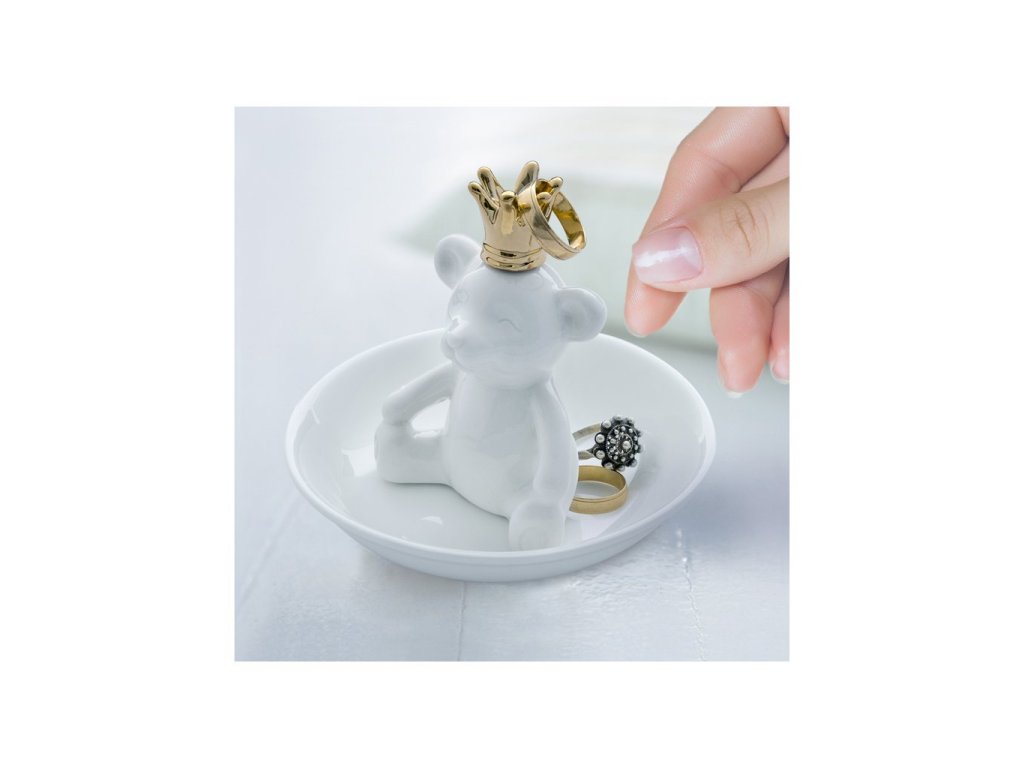 Porcelánový stojánek na prstýnky BALVI Medvídek .Velikost: 10 x 10 x 8,5 cm.