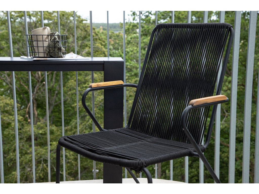 Moderní, stylové a odolné – trendy židle, kterou má každý pravdu! Bois má pohodlný design s područkami z teaku a černým sedákem z lan.