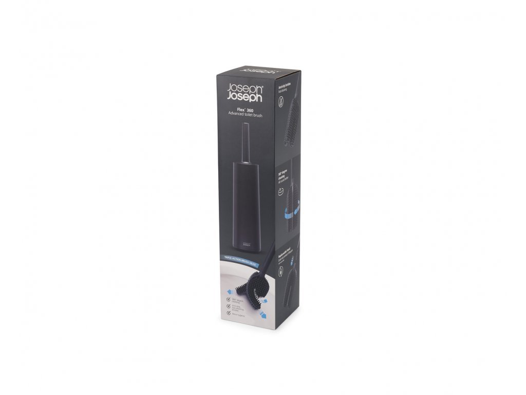 WC štětka JOSEPH JOSEPH Flex 360 Luxe s inovovanou flexibilní silikonovou hlavicí. Hlavice Flex 360 pracující ve třech směrech současně usnadňuje čištění každého záhybu WC mísy, včetně obtížně přístupných okrajů. Dostatečná vzdálenost silikonových štětin odstraňuje riziko zanášení štětky nečistotami. Po silikonovém povrchu štětky voda rychle stéká zpět do mísy - nehrozí odkapávaní na podlahu při vracení do stojánku. Silikonová hlavice Flex 360 je výměnná.
